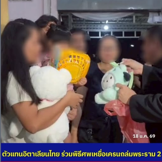 ตัวแทนบริษัทอิตาเลียนไทย ร่วมพิธีศพเหยื่อเครนถล่มพระราม 2 มอบของขวัญวันเกิดให้ลูกสาว 2 ขวบ พร้อมเงิน