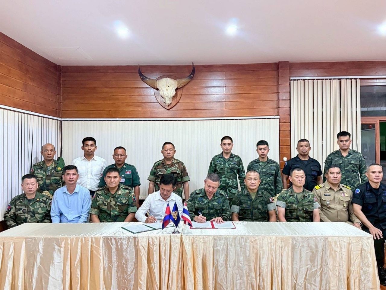 ผู้สื่อข่าวรายงานว่าก่อนหน้านี้เมื่อวันที่ 4 พ.ย.68 ที่ผ่านมาชุดสำรวจและจัดทำหลักเขตแดนร่วมไทย-กัมพูชา โดยมี พ.อ. ยุทธพล สุจริต แม่กองสนามฯ ฝ่ายไทย นายพรมเซือน วัฒนะ แม่กองสนามฯ ฝ่ายกัมพูชา ได้ร่วมหารือการจัดทำคำแนะนำทางเทคนิคในการสำรวจและกำหนดหมุดชั่วคราว ระหว่างหลักเขตแดนที่ 52-59 พร้อมทั้งได้ลงนามเห็นชอบร่วมกันในคำแนะนำทางเทคนิคฯ ดังกล่าว โดยมี น.อ. ปรัชญา หาญเทียม ผบ.ฉก.นย.จันทบุรี น.อ.แทน ทองรับแก้ว รอง ผบ.ฉก.นย.จันทบุรี น.อ. วีระเชษฐ์ ขยันทำ หน.ชค.ทพ.นย.2 และนายสิทธินนทร์ เชียรชีระสกุล กำนันตำบลเทพนิมิตร เข้าร่วมหารือฯ ณ ด่านผ่านแดนถาวรช่องโดง อ.ก็อมเรียง จ.พระตะบอง ประเทศกัมพูชา