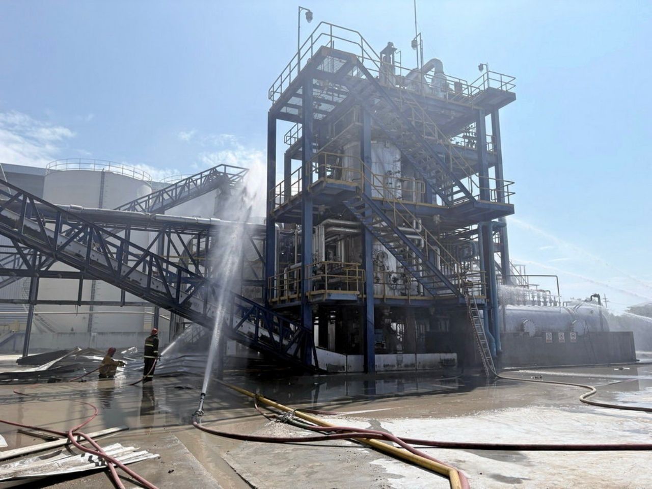 นายธนกร กล่าวต่อไปว่า สำนักงานอุตสาหกรรมจังหวัดอ่างทอง รายงานด้วยว่าได้สั่งการตามมาตรา 39 วรรคหนึ่ง ให้โรงงานหยุดประกอบกิจการทั้งหมด เนื่องจากส่วนที่เกิดไฟไหม้อยู่บริเวณหอกลั่นซึ่งเป็นส่วนหลักและเกิดความเสียหาย โรงงานจึงต้องหยุดประกอบกิจการทั้งหมด ขณะที่กรมควบคุมมลพิษ ได้ส่งศูนย์ภาค 6 เข้าตรวจสอบมลพิษภายในและภายนอกโรงงานแล้วพบว่า ไม่ส่งผลกระทบหรือเป็นอันตรายต่อพนักงานภายในโรงงาน รวมถึงประชาชนโดยรอบโรงงาน