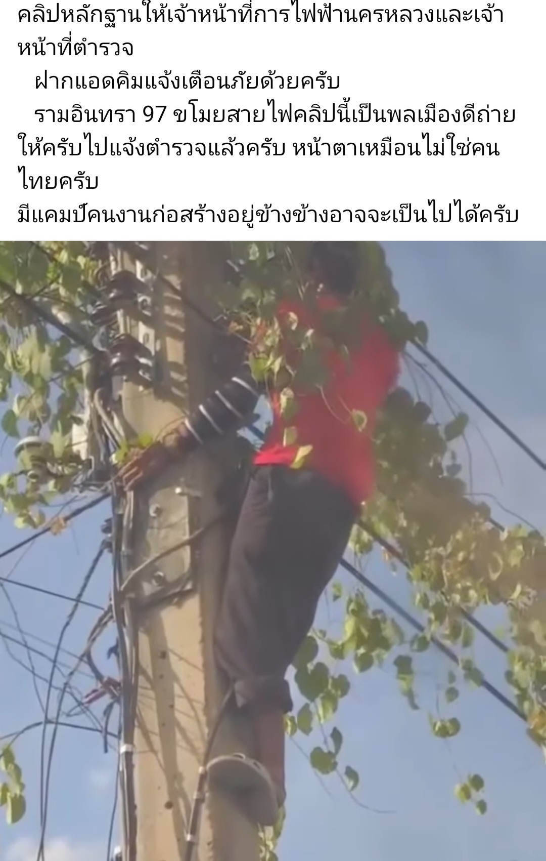 คลิปหลักฐานให้เจ้าหน้าที่การไฟฟ้านครหลวงและเจ้าหน้าที่ตำรวจ