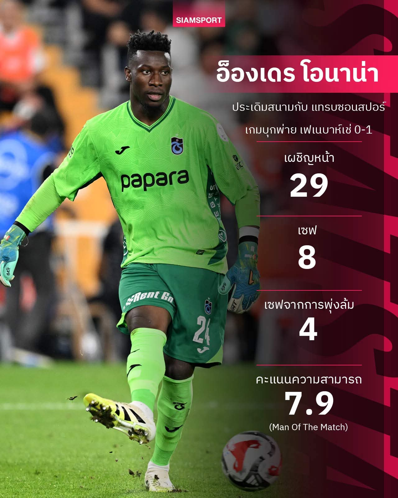 อ็องเดร โอนาน่าประเดิมสนามกับ แทรบซอนสปอร์ ได้อย่างยอดเยี่ยม