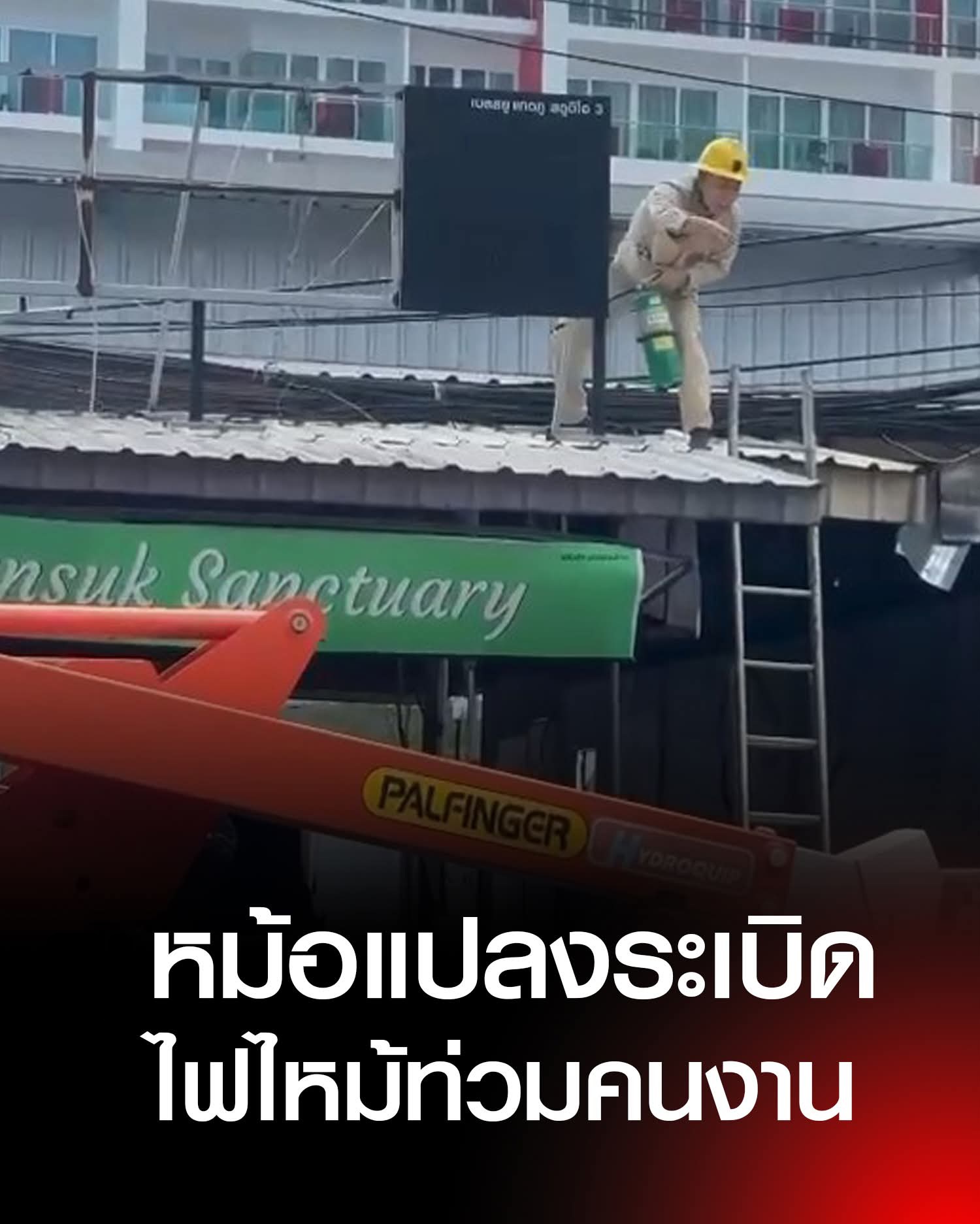 สุดช็อก คนงานก่อสร้าง หม้อแปลงระเบิด ไฟลุกท่วมตัว