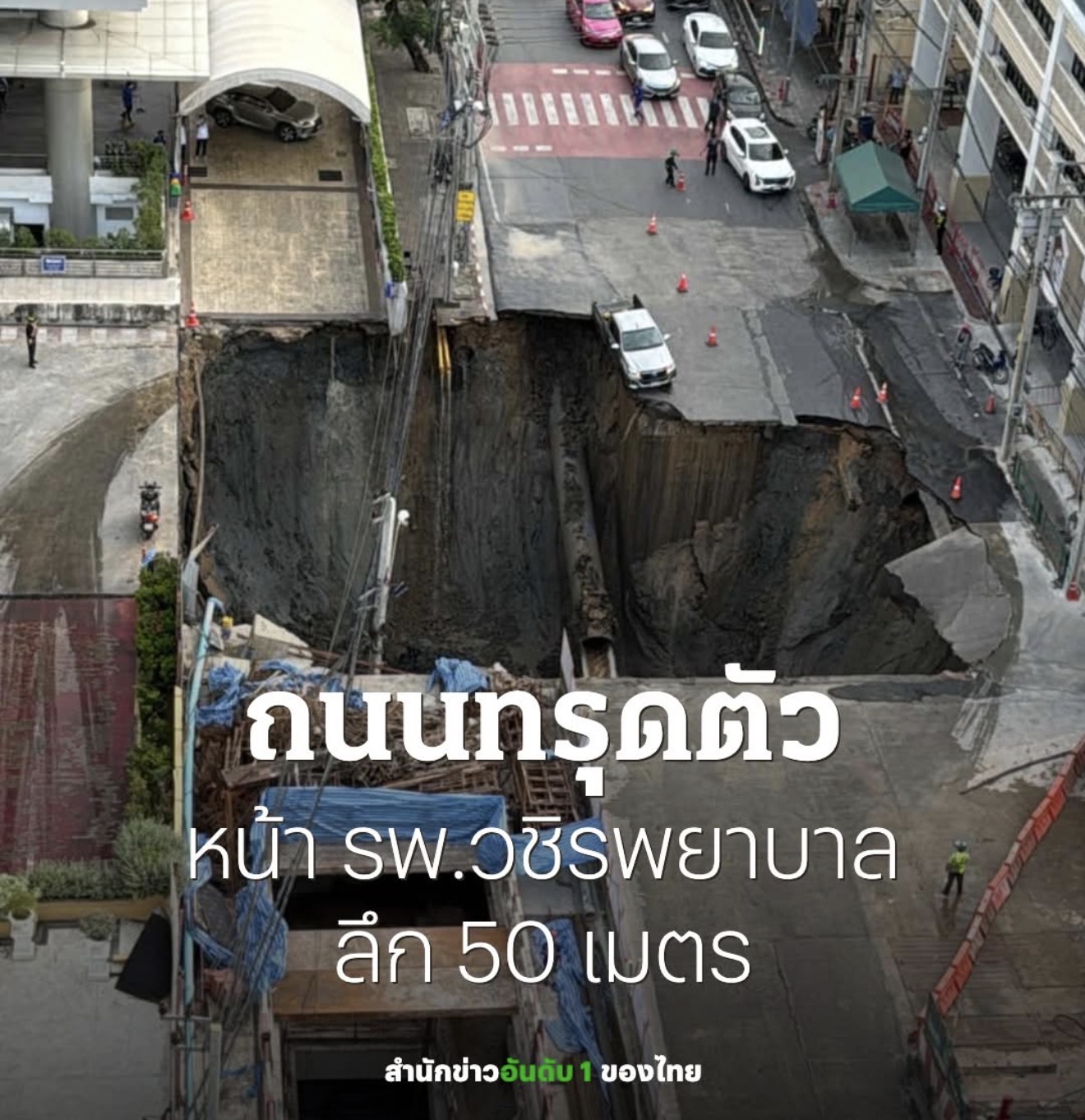 ด่วน ถนนทรุดตัว หน้าโรงพยาบาลวชิรพยาบาล ลึก 50 เมตร การทรุดตัวขยายวงกว้าง