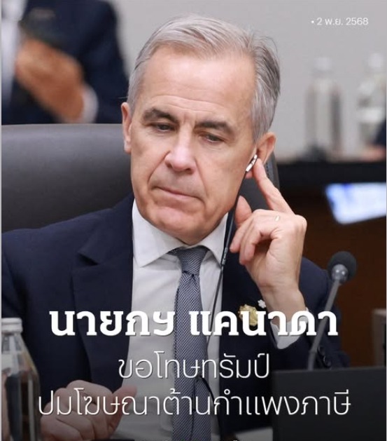 นายกฯ แคนาดาขอโทษทรัมป์ ปมโฆษณาต้านกำแพงภาษี
