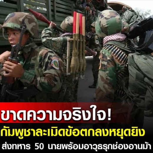 กัมพูชาละเมิดหยุดยิง! ส่งทหาร 50 นายพร้อมอาวุธรุกช่องอานม้า
